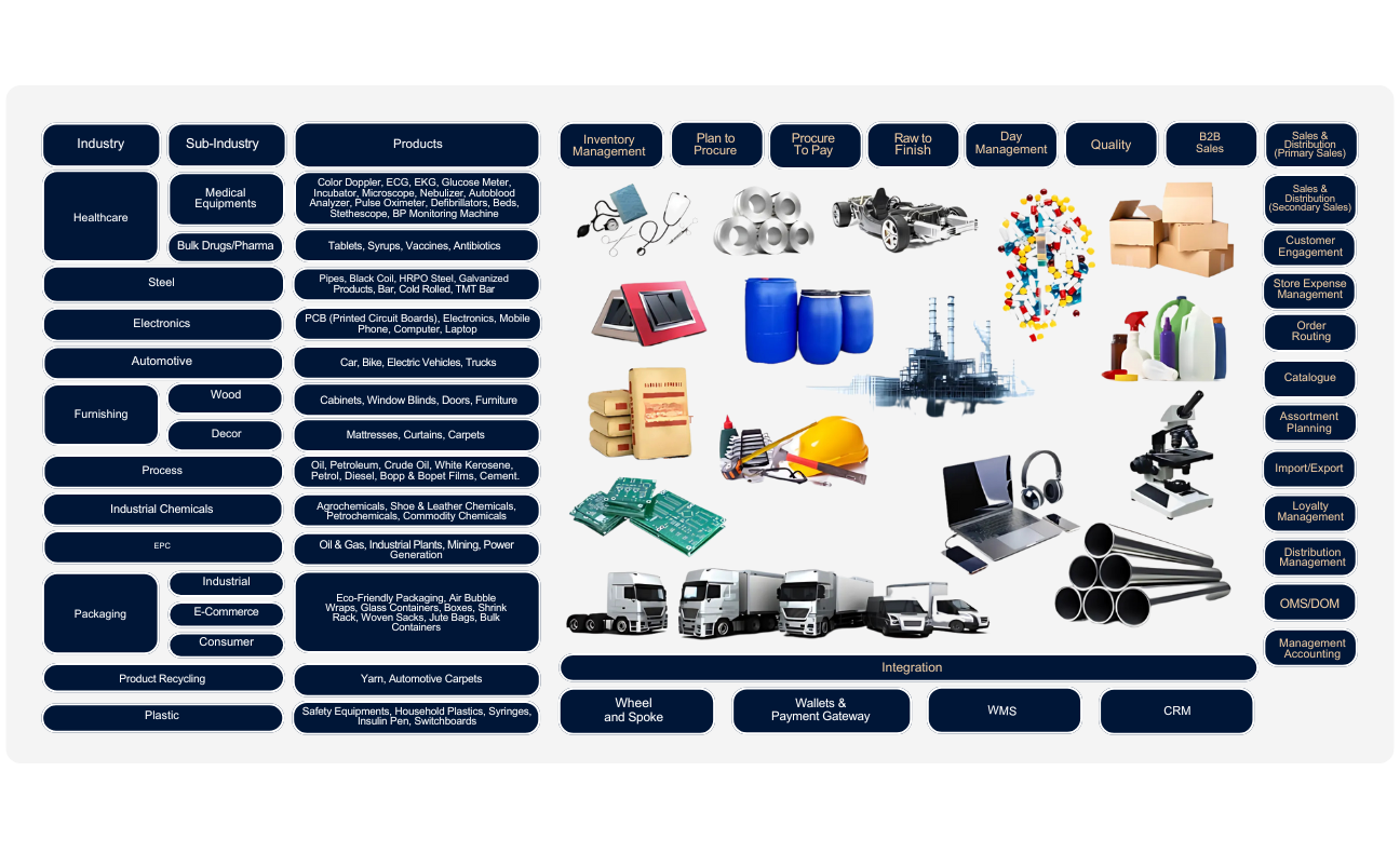 We have implemented solutions across the following matrix of products, sub-industry, and core business processes for the Industrial Manufacturing business.