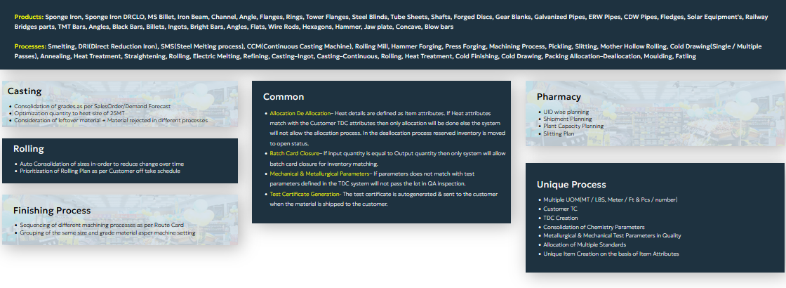 Another distinctive aspect is the critical use of dyes and moulds in industrial manufacturing, which are part of capacity and material planning. Our journey began with a prominent steel company for which we developed a customized ERP. We later upgraded the same company to Navision and then to Axapta 2012. One of our most complex solutions for that client was integrated planning, covering container export of white bar, backward production planning of gold bar, and casting integration. This project provided a strong foundation of knowledge in industrial manufacturing and was implemented for various clients in several projects. Similar processes are observed in steel, heavy industries, and EPC. EPC involves managing production cycles as a project, including integrated production, erection, commissioning, and post-commissioning warranty and AMC cycles.